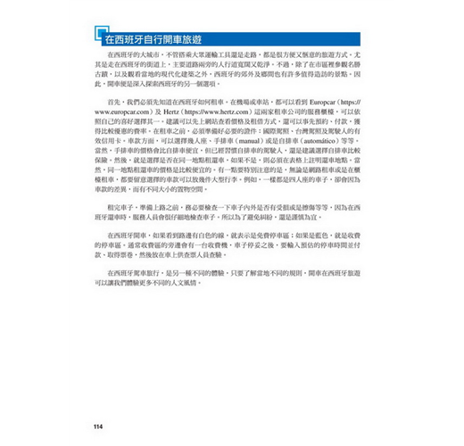 【特點6】最實用的「生活與文化專欄」在西班牙旅遊與生活,必須了解許多和台灣不同的生活小細節,例如馬德里公共交通卡的使用概念,不是在卡片裡存入「金額」,而是儲值「回數票」;馬德里絕大部分的地鐵站都沒有廁所,必須到附近的店家才能借用廁所……作者所分享的生活經驗與文化介紹,能讓你更快融入當地生活。