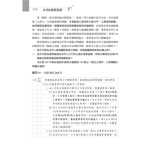 因此第八版,不,重新撰寫後的公司法題型破解,已經是一本能因應新修法內容與應付新型考試方向的考場武器。