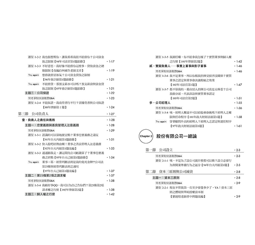 的各種變化題型。而這一切的修改,都是希望讀者能真正學好公司法,往後,碰到又臭又長的題目不再不知從何下手,也不再心有餘悸。
