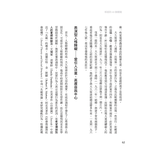 透過此一經、緯架構娓娓道來,讓讀者能節奏分明的了解每個案例;對於每一個案例背後的成因分析,也都能深刻洞悉。本書特別運用結合犯罪心理和身處環境的方式詮釋犯罪成因,更是與晚近犯罪學發展之脈動不謀而合。