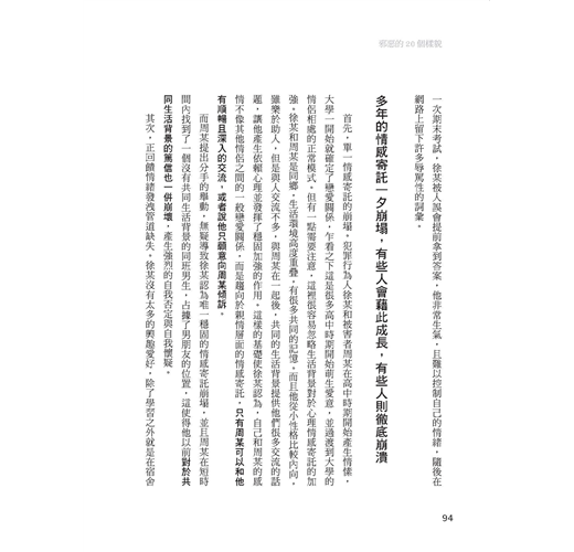書中文字在引領我們以第三者角度看這些案件時,作者自謙無法避免有主觀涉入,但書中內容引用眾多相關研究文獻,也運用不同的心理學理論切入,閱讀起來沒有教科書的艱澀,卻又比八卦報導具備更多專業性。