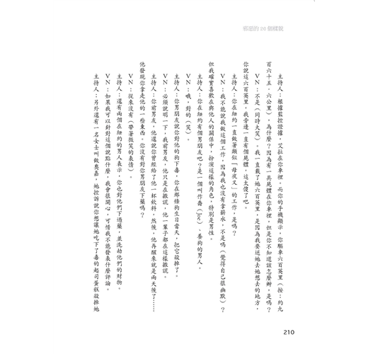 人心迂迴,惡意難辨,作者試圖為我們描摹輪廓,預判走勢,完整架構出邪惡的樣貌。儘管它並不討喜,卻始終是這社會的一部分,先能做到直視與理解,才能談防範與停損,那怕又是一場徒勞;但至少面對犯罪,我們能做的不會只有祈禱。
