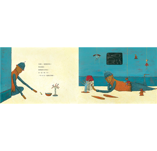 在鳥兒懷著對未來的抱負時,稻草人跟著一起作夢、一起策畫,為鳥兒的夢想感到開心。