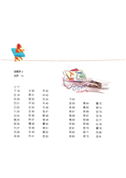 1. 家長陪伴孩子閱讀本書時,可隨孩子的年齡與認知程度自行分配識字的進度與順序,一天教學幾個字,或是持續幾天從頭到尾看讀一次,都能得到很好的效果。教學時,家長可用一至兩句話講解圖像與文字的關係,或是問孩子:「你覺得為什麼是__ 呢?」,由孩子發揮想像力來描述看到的圖文,更能加強圖像與文字的連結。