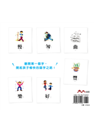 2. 當孩子看讀反應越來越快速時,家長可試著遮住圖像部分,測試孩子的認字能力。如果碰到無法單獨辨認的字時,家長可指著文字部分來提示該圖形的特色,孩子便能很快地記憶起來。