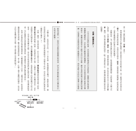 月翔的《日本戰國這樣讀》,某種程度上繼承了戰國商業策略書的血脈,用各種公司組織和簡明易懂的現代語言,讓讀者更容易進入戰國這個有趣的世界。畢竟許多高能戰國愛好者,一開口就是各種難懂的古代用語或是各種冷門知識,來顯示自己的趴數。但是這樣的敘述方式,很容易讓讀者忘記其實戰國真正有趣之處,在於「人」之間的各種縱橫交錯。戰國英雄其實和現代人相差不遠,只是因為種種時代背景和文明演進程度不同,而讓人有種好像他們和我們是不同人種的錯覺。經由月翔平易近人的筆觸,我們不知不覺中就融入充滿有趣故事、和我們一樣有愛恨情仇的迷人戰國世界。