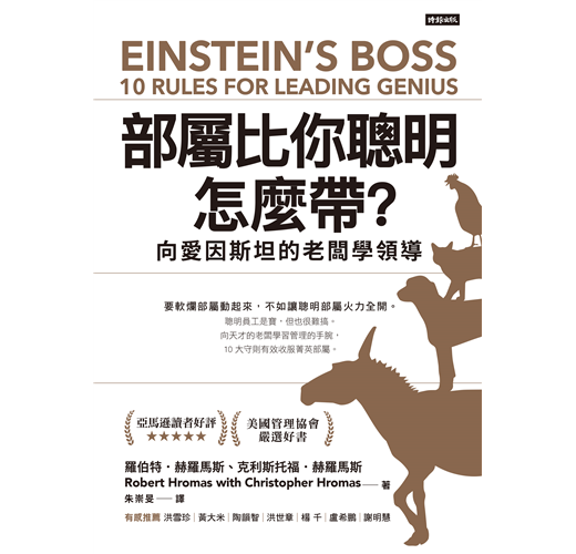 ◤向愛因斯坦的老闆學習,令70餘位天才折服的管理藝術。愛因斯坦是家喻戶曉的天才物理學家,但鮮少有人留意到他的老闆亞伯拉罕.弗萊茲。弗萊茲沒有過人智力,旗下卻網羅 30 位諾貝爾獎、38 位菲爾茲獎得主,他運用獨特的管理手腕,帶領他們發光發熱,締造 20 世紀最輝煌的科學成就。(例如第一台有記憶體的電腦)。他適才適性的管理方法可以濃縮成 10 條守則。
