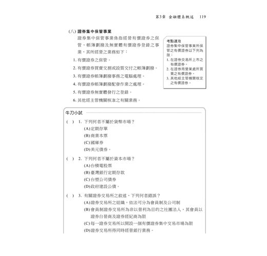 演算題目是測量自己是否吸收的一個很好的方式,所以本書在每個重點後面,均附有相關的「牛刀小試」,屬於小範圍的單元練習,藉此可以慢慢累積解題的方法、速度等,對於考試很有幫助。另外在讀完章節,本書在各章節後面,均附有大範圍的「精選試題」,除了有助於了解自己對該章節的了解度外,更有助於了解最近年的命題重點。