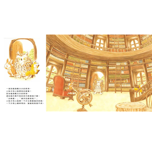 一進到貓頭鷹太太的家裡,小兔子和小狐狸就好興奮!因為貓頭鷹太太的家裡,連從窗外看不到的地方都擺滿了書。