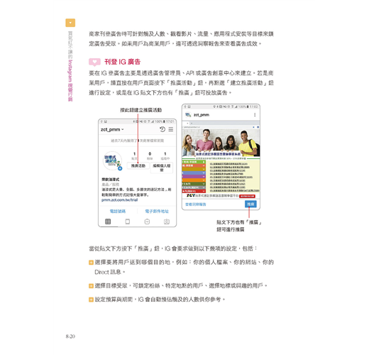 ♥IG直播、IGTV頻道、IG商業工具、IG廣告投放、行動呼籲、@交叉推廣,各種IG行銷的必殺技,這本書不藏私地一次到位通通報給你知。