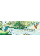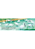 書中除了想呈現鳥類嘴型因應食性演化的有趣現象,在圖畫的背景也加入臺灣不同的溼地型態,例如:溪流、湖泊、沙灘、岩岸、草澤…等,讓孩子們更清楚鳥類的棲息環境。