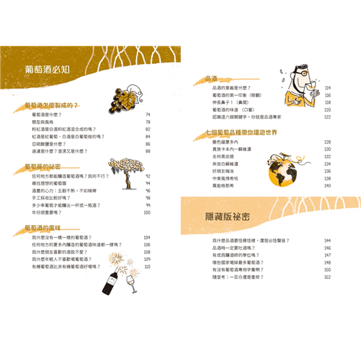 兩位來自不同背景的葡萄酒專家,攜手整理出最常被葡萄酒新手詢問的68個問題,針對一般人最常遇到的障礙提出解答。