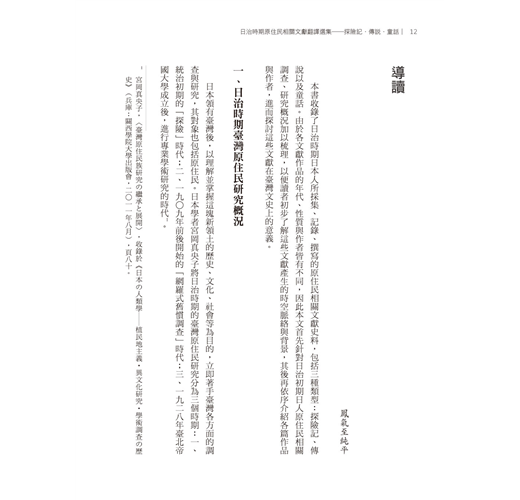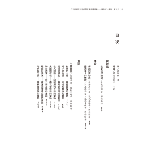 ★彙集日治時期日本人所採集、記錄、撰寫的原住民文獻史料,嚴選其中關於「探險記」、「傳說」與「童話」類型的六種代表性著作:中島竹窩〈生蕃地探險記〉、秋澤烏川〈傳說的高砂族〉、川上沈思〈臺灣蕃人的傳說〉、西岡英夫〈生蕃童話〉〈續生蕃童話〉〈海相關的生蕃童話〉──全文中譯!