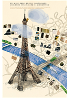 這是一本要把書橫著看,然後上下翻閱的書。文字和圖畫採用上下並列的方式呈現,互相呼應著這個屬於巴黎的故事,像一本城市的導覽,也像一張張的巴黎風景明信片。