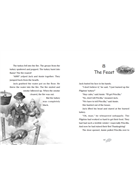 為了寫《難忘的感恩節》而做研究的時候,我學會一些以前不知道的事情。我發現,一般我們認為的第一個感恩節,也就是一六二一年那場英國清教徒移民和印第安瓦帕諾族在美國普利茅斯灣舉行的盛宴,舉行的目的並不是為了表示感謝,而是為了慶祝豐收,在這三天的慶祝期間,清教徒移民和瓦帕諾族多次一起享用大餐。儘管如此,傳統上我們仍認為,這個慶祝豐收的節日就是第一個感恩節。兩百多年後的一八六三年,美國總統林肯宣布每年十一月的最後一個星期四為美國的國定假日:感恩節。