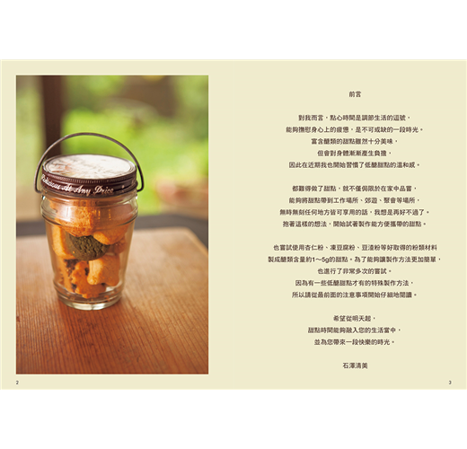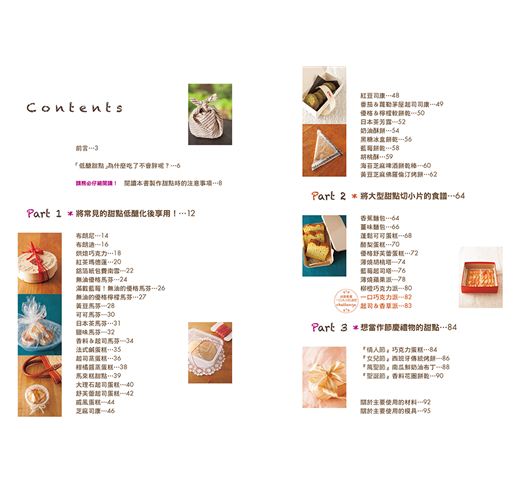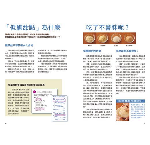 甜點這種東西和身為主食的米飯或麵條不一樣,即使不吃也不會有甚麼影響。但吃了會讓人變胖反而就是個問題了。但是,吃甜點時可以獲得的幸福感、放鬆感也是無可取代的。也正因為如此,世界上才會有了如此多的甜點……。然後,在本書當中出現的低醣甜點將以即使吃了血糖值也不會急遽上漲的含醣量為考量點,並主要介紹含醣量約1~5上下的低醣甜點食譜。