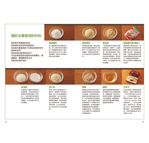 也嘗試使用杏仁粉、凍豆腐粉、豆渣粉等好取得的粉類材料製成醣類含量約1~5g的甜點。為了能夠讓製作方法更...