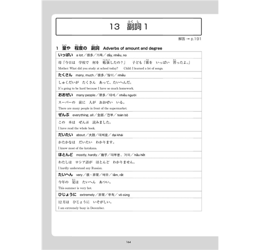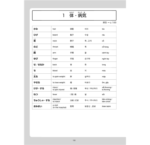 於附錄彙整了模擬試題以外的重要語彙。為幫助考生能夠靈活運用,語彙依主題分類,並附上相關習題,以及英語、中文,越南語等四國翻譯。另收錄聽解考試常見的「自動詞、他動詞」、「敬語」等一覽表。