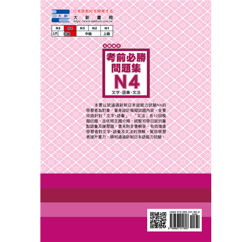 專為日語檢定N4考生編寫的應考問題集。以此為輔反覆練習,必能增強您的考前戰鬥力!