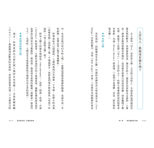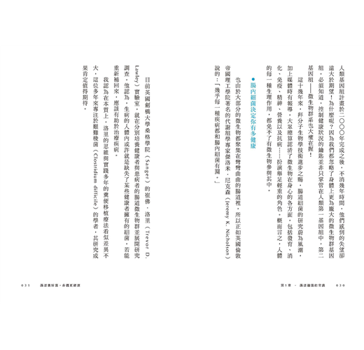 腸道菌對我們身體健康的掌控程度,遠超過預期。身體將大部分的免疫防衛軍隊配置在腸道,避免毒物細菌入侵。當腸道不健康時,壞菌肆虐、毒素瀰漫,身體中的免疫系統努力防禦。腸道菌是人體必要的器官,它們提供養份,調控腸道細胞的發育,誘導免疫系統的發展,但是令人驚訝的是我們對它們的認識如此不足。腸道菌對人體而言,是一生與我們共存的必要器官,是人類的生命共同體,人類與腸道菌共生,人類的基因體與腸道菌基因體共同演化,我們生理代謝也與腸道菌互相影響。