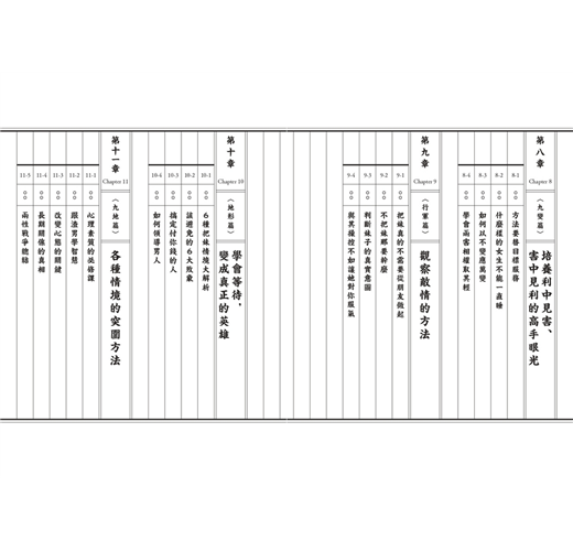 很多人情關難過,會去讀《老子》或《莊子》這類專講清靜無為的書,當成心靈雞湯來讓自己好過點。其實,情場和戰場可是非常相似,很多人喜歡卯起來送禮、請吃飯追求女生,不就是「上兵伐謀,其次伐交,其次伐兵,其下攻城」裡的「伐兵」或「攻城」?這是等而下之的策略,你應該思考要怎麼「不戰而屈人之兵」,讓妹自己來把你(這句話也是我獵女課程的副標題)。
