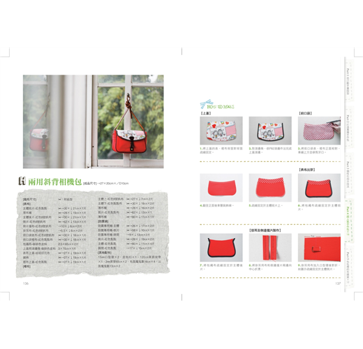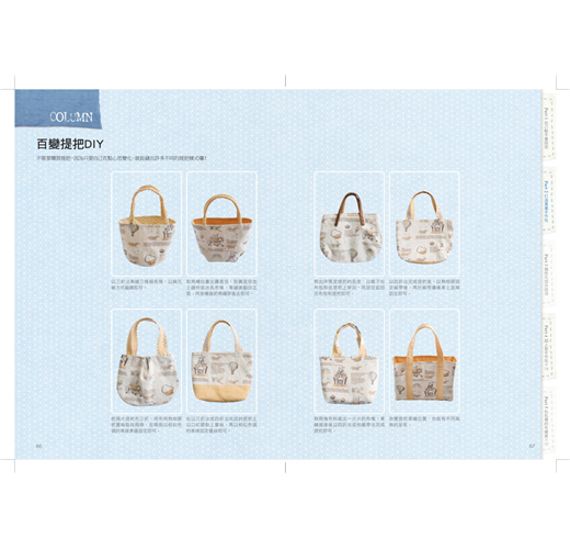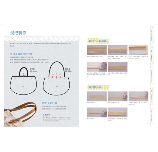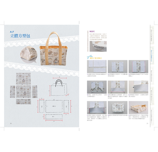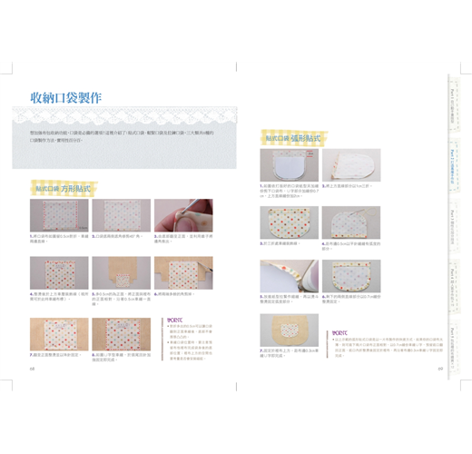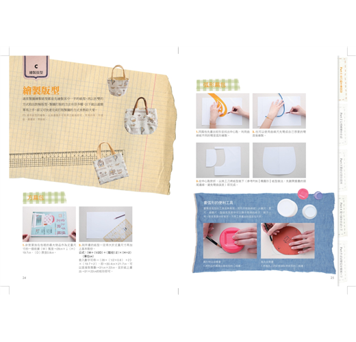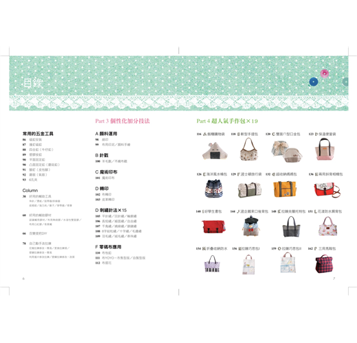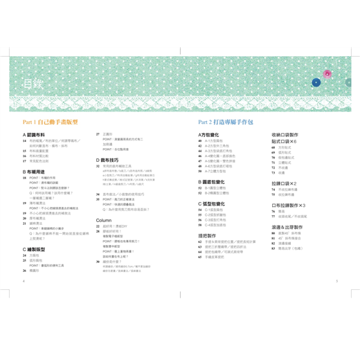 ※本書以布包教學順序開始,一步步詳細地從頭傳授作者多年累積的手作技巧: