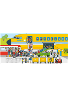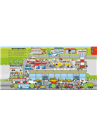 歡迎光臨!歡樂城是個充滿驚喜的地方!有好多好多的小翻頁可以打開呵!還有一個大大的摺頁場景,可以了解機場裡裡外外的一切活動。快來翻一翻!找一找!讓我們來一趟探險之旅吧!