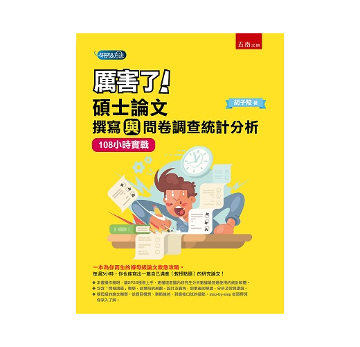 作者融會多年來指導數十位碩士生論文的經驗,從碩論的完整流程、基本架構,到問卷調查的信效度分析,一步一腳印帶著初學者領略統計分析與論文的撰寫技巧。108小時後——碩士學位輕鬆到手!