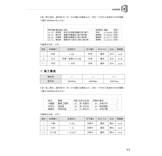 *每個題組均分成三個部分:第一部分是檔案管理,第二部分是目錄製作,第三部分是合併列印與文書處理。