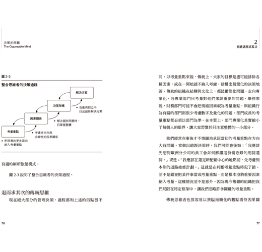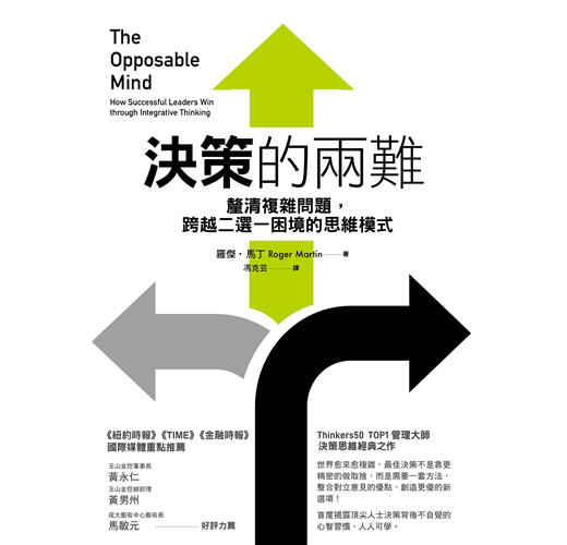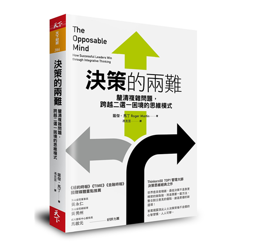 【推薦序─】 超越兩難的關鍵思維 玉山金控董事長/黃永仁 玉山金控總經理/黃男州 To be, or not to be, that is the “Opportunity.” 策略與執行猶如雄鷹的雙翼,精準的決策加上有效的執行,才能展翅高飛,翱翔於寬廣的天際。處在超競爭的世界裡,前瞻未來的策略是贏得勝利的基石,兼具速度與準度的執行力則是邁向成功的關鍵。然而在策略上,企業時常面對決策的兩難困境,陷入取捨的進退維谷,如何能夠真正突破困境,擬定出創新且清晰的策略,兼容並蓄不同決策的優點,同時降低缺點與風險,便成為企業經營最重要的課題。 2017年Thinkers50全球五十大管理思想家榮獲第一名的羅傑・馬丁(Roger Martin)教授藉由深入研究成功領導者面臨艱難決策的行為與心態,提出「整合思維」(integrative thinking)是突破的關鍵。具有整合思維的領導者總是保持開放心態,願意將更多因素納入決策的考量重點,勇於探究各項因素之間複雜的因果關係,擬定決策架構時能同時掌握問題的全貌與細節。最重要的是,整合思維者不會輕易妥協、落入二擇一的取捨困境,而是從每個選項中找出最具優勢的創新解決方案。 分析玉山的發展歷程,在綜合績效能夠有快速的成長及不錯的表現,高度呼應馬丁教授所強調的整合思維,在關鍵的時刻,努力創造更好的決策。舉玉山的重大決策為例,2012年,玉山第三個十年的開始,玉山內部討論凝聚出兩個策略方向,一是持續深耕銀行業務,提升專業服務及業務規模;另一是擴展金融版圖,投資或併購證券及保險業務。經過多次激盪,我們認為應該還有更好的選擇,決心找到更好的方案。 因此,透過重新思考玉山長遠發展的關鍵要素,並深入研究亞洲崛起、科技發展及顧客需求改變的大趨勢,我們體認到想要在未來的競爭中脫穎而出,資源應該從以業務為主調整成以顧客為核心的配置,擬定出「深耕台灣、布局亞洲、成為金融創新的領航者」三大策略主軸。在台灣業務持續成長的同時,建構完整的亞洲金融平台,提供顧客優質的跨境金融服務,並且運用科技的力量,取得數位金融領先的地位。不侷限於過去成功的經驗,打造跨產業、跨國界、跨虛實的創新經營模式,不僅組織能力獲得提升,人才也得到多元發展的機會。 此外,馬丁教授認為,現代商業對簡化及專業化的偏好,並無法真正解決問題。因為專業化讓人忽視整體,簡化帶來假性輕鬆,不要採取簡化及專業化,以問題原本的複雜度來思考解決方案時,就有可能出現突破,如同彼得‧杜拉克強調:「沒有財務決策、稅務決策或行銷決策,所有的決策都是經營決策。」我們認為透過團隊擴展思維的深度與廣度,是建構整合思維的最佳方式。因此,玉山非常重視團隊合作的文化,舉行重要決策會議時,一定會邀請不同部門、不同專業、不同世代的玉山人共同參與,多元開放傾聽各種意見,凝聚團隊的共識。 面對快速、複雜、多變、不安的環境,不論是個人、企業、社會或國家,決策的兩難將成為新常態,建立「觀點、工具、經驗」相互引導與回饋的正向循環,在對立中找到更多機會,在複雜中勇於挑戰現狀,包容矛盾的想法,不陷入to be, or not to be的兩難問題,才能以整合思維創造更美好的未來。 【推薦序二】 翻轉思維前,先學會如何思考 成大藝術中心藝術長/馬敏元 近年來,無論從企業談創新到組織談改造、教育談變革時,都特別重視改變思考模式。一般來說,大家都認同「思考」很重要,也常直覺地聯想到「批判性思考(critical thinking)」,或是最近相當流行的「設計思考(design thinking)」等等。然而,什麼是「思考」?如何讓人擁有好的思維與思考模式?它如何學?或是如何教? 在此,我想先提一下「思考」二字。依漢字造字原意來解釋的話,「思」這個字,心上有田。然而「思」字上面的田不是田,根據篆文,「思」字上半部的「田」原為「囟」,即頭蓋骨,指頭腦;下半部「心」是心靈感受,合起來意指用腦與用心的交互作用。而「考」的話,則是將象徵時間累積知識的「老」字加上一勾,成了「考」表示知識延續與延伸,演繹知識之意。「思考」綜合起來,即是意指:「理性用腦與感性用心」的交互作用下的「思」,將既有知識演繹「考」出另一知識成果的活動。 本書作者羅傑.馬丁教授,花了超過三十年的時間研究,歸納出成功領導者們的共通模式,提出整合思維的概念。書中八個章節中,有「思」亦有「考」,提供讀者自我訓練與學習「思考」的能力。本書前半部透過真實案例的說明,讓讀者理解對立現實下,如何面對兩難困境,跳脫二選一的限制,從看見「對立想法」,到「與複雜共舞」的面對問題現況之「思」的能力。以及在後半部的章節中,逐步提供讀者建構個人知識系統,從生成性推理(generative reasoning)及因果模型(causal modeling),到引導出「觀點、工具、經驗」知識系統,提供了我們「考」的工具與學習模型。 本書之文章案例生動易懂,見解卓越,讓讀者理解到整合思維者靠著容納對立想法的特質,進而創造出耀眼的成績,是具影響力的暢銷書。時常面臨兩難與對立困境的你我,本書提供了不妥協於二選一的對立選項,尋求新可能的心法,非常值得一讀與珍藏。