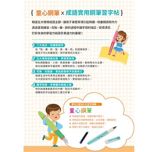 【童心鋼筆-快樂藍】X《兒童鋼筆習字帖-成語選 (實用篇)》