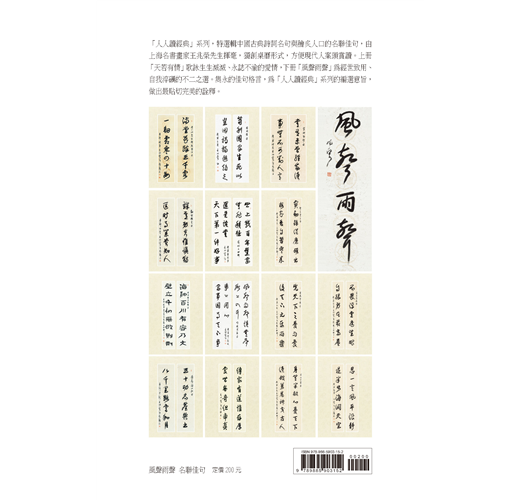 ※此套書附贈人人出版《風聲雨聲名聯佳句》,全冊共十四幅詩詞名句,由上海名書畫家王兆榮先生揮毫,獨創桌曆形式,帶您品味書法對聯之美。輕鬆易讀的短文賞析,對於這些千古傳唱的名聯佳句,能增加更深的認識與領會。