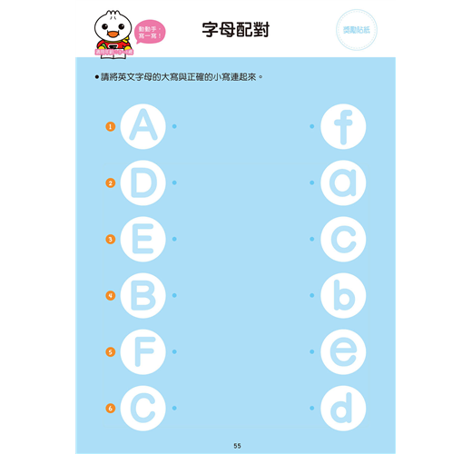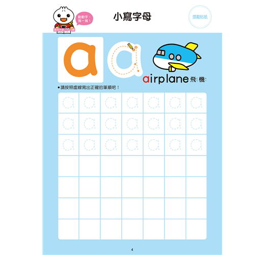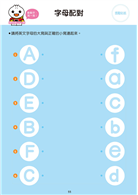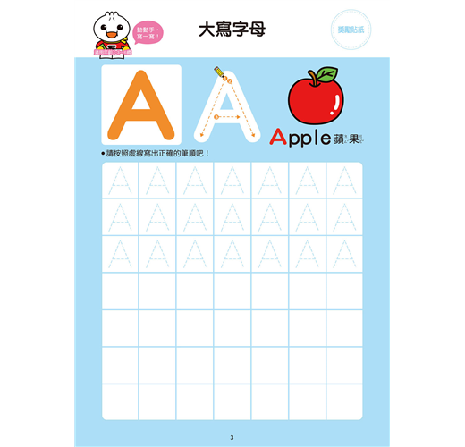 練習大小寫英文字母,可愛的圖片加上正確筆順,讓孩子在練習寫ABC的同時,增進運筆能力。