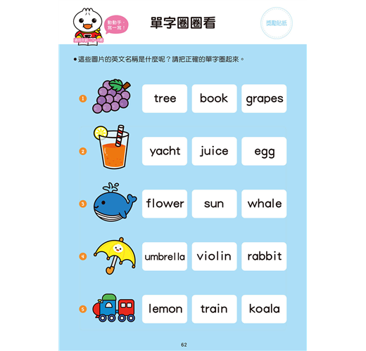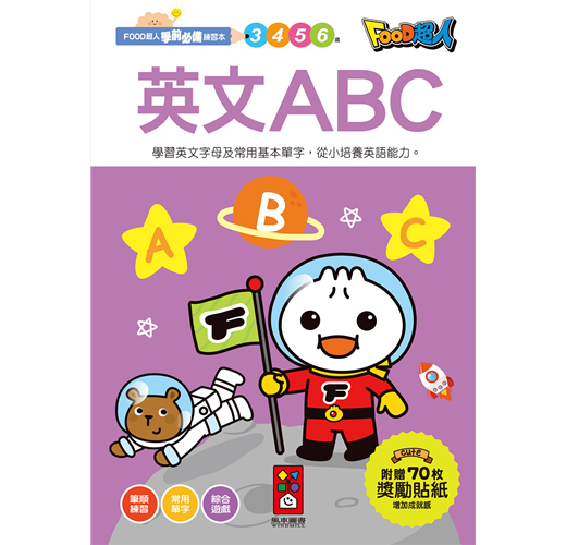 依照筆畫順序練習寫ABC,藉由圖像認識英文單字,進而嘗試練習發音、學習拼寫,奠定英語能力基礎。書中附贈FOOD超人獎勵貼紙,讓孩子增加書寫的樂趣。