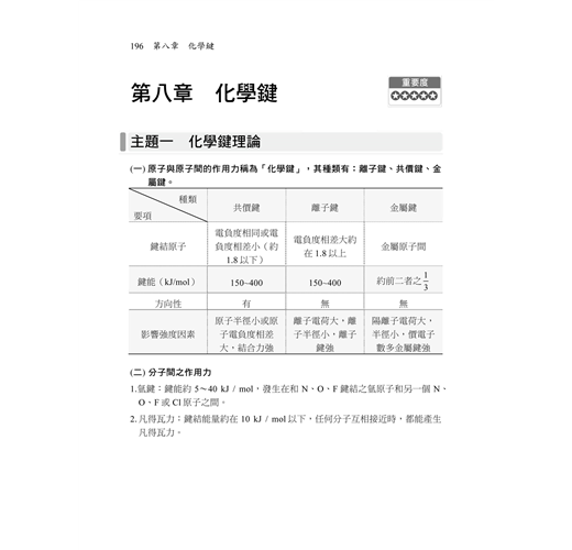 化學科最令人畏懼的一點,就是記憶性的資料很多。有些人遇到大量的化學式及方程式,意圖或被迫在極短的時間內死記死背,結果成效不好又浪費時間。而且光靠記憶還不足以解答化學考題,必須把記憶的內容靈活運用,才能正確解題,有鑑於此,本書以系統化整理繁瑣的化學考試要點,並將這些要點整理成圖解表格,讓你能一目了然,只要理解圖表中的資料,配合學過的化學原理加以分析、推理,即可判斷出正確答案。