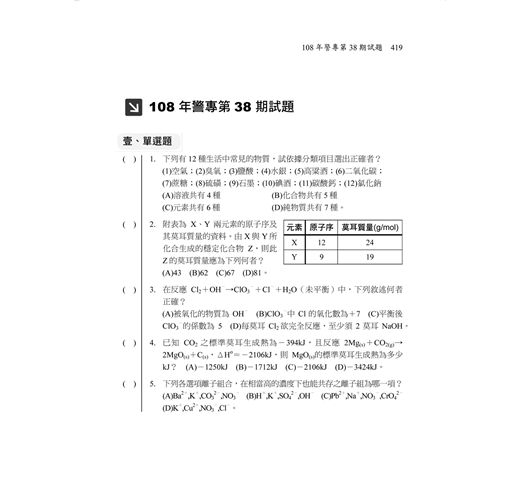 輔材:本電子書收錄第33~34期警專化學試題,是您考前複習、快速搶分的必備利器,歡迎掃描索取!