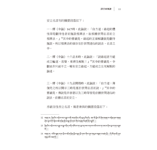 三、釋《中論》十九品開端時,此論說:「自方道:薄伽梵之所以開示三時是基於世間名言而說。」其中的要義是,佛說是非善惡以及三時等皆是依據世間通俗的說法、依據名言而安立。