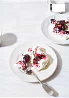 將大量的鮮奶油霜和喜歡的水果放在烤好的蛋白餅上面即可。果醬、果汁也很搭。