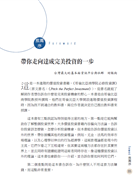 第三點是本書的一大重點,那就是教你怎麼和他人介紹自己的投資機會。這並不是每個人都有的需求,卻是一個值得深入學習的方法。因為當你寫下自己的投資方法時,不僅能報告給別人看,在整理的過程中,也能很有條理、很有邏輯的梳理自己的想法,進而更了解自己的想法。