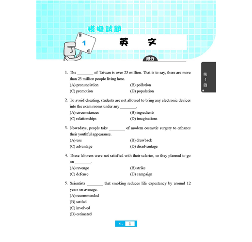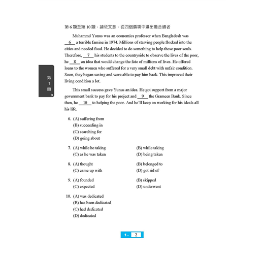 克漏字的部份除了平常就要多累積自己的單字及片語量之外,另外也不要忽略了介系詞的使用,還有要特別注意前後文的語意,面對題目便能迎刃而解。