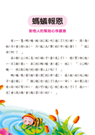 炎熱的夏天到了,蟬在樹上悠閒的唱著歌,「知了—— 知了——」。草地上有幾隻小螞蟻,一隻接一隻排隊走著。牠們都背著沉重的袋子,累得滿頭大汗。