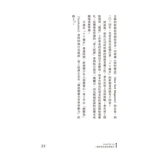 「本書呈現出零工平台的複雜性,涵蓋不同的工作類型和工作關係。本書的寫作和研究頗佳,同時採用個人故事和學術研究的資料來源。對於想了解科技如何改變工作性質的人,我強力推薦本書。」——麥克.麥飛(Mike Maffie)