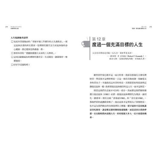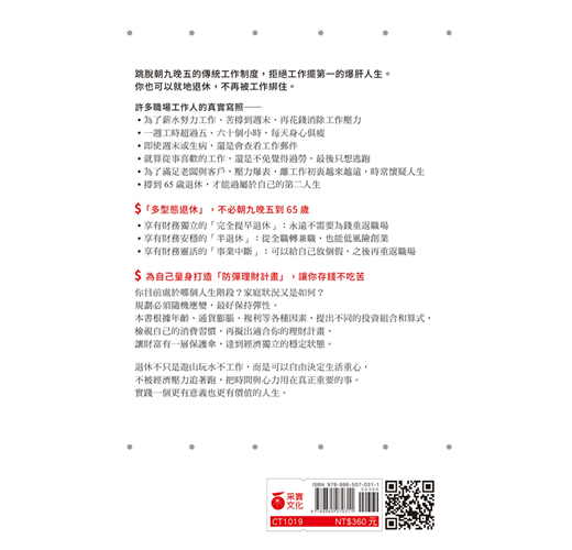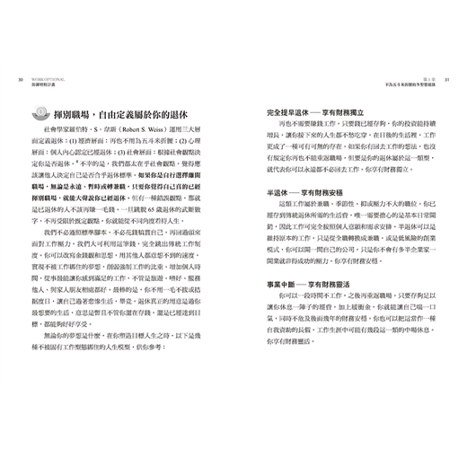 「退休真義是退而不休,在自己有熱情的領域發揮所長,才是世上最美妙的事情,誠摯推薦這本書。」──施雅棠,《30歲警官靠美股提早退休》作者、美股夢想家版主