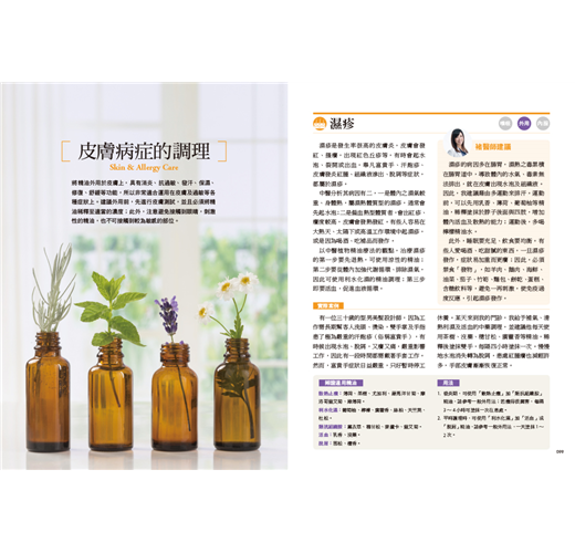★48種疑難雜症,皆可用精油辨證療癒擁有多年「中醫植物精油療法」臨床實證經驗的褚柏菁醫師表示,精油除了能鎮靜心神、使人放鬆之外,還可以發揮其他許多作用,例如:健胃整腸、滋潤肌膚、美容保養、預防感染、淡化疤痕等等。