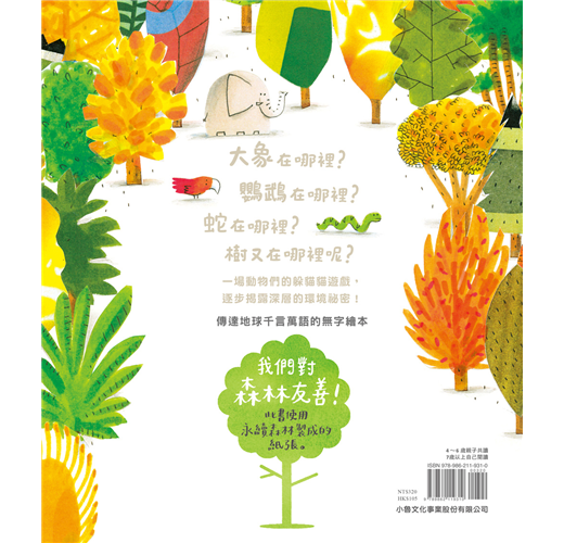 一場尋找大象、鸚鵡和蛇的遊戲,藉由作者的細膩運鏡,逐層揭露都市開發造成的森林消失。當房子、汽車和公路取代了森林,動物們的藏身之處也越來越小……