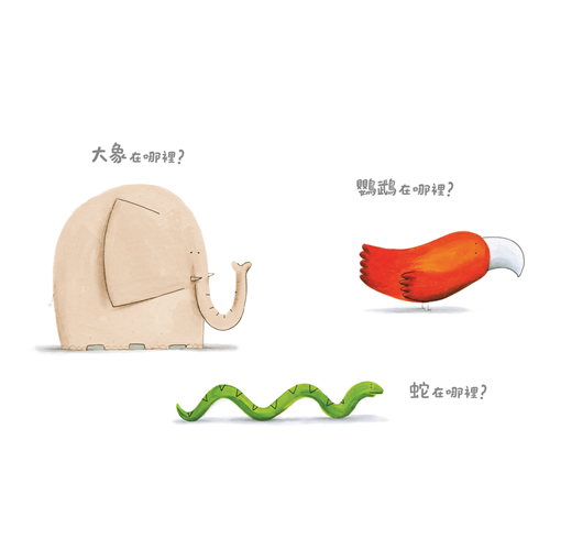 《大象在哪裡?》將圖畫蘊含的力量發揮得淋漓盡致,沒有文字的介入,卻在無聲中織就出飽滿而有張力的故事。簡潔有力,何須千言萬語!