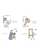 ▲第四章「動物狂想曲」,八個連環漫畫故事,用不同的動物做為主角,用國際新聞改編情節。有人常說大人會扼殺兒童的想像力,結果秋榮大證明,六十歲後,腦子照樣可以作怪,創意無窮呢!