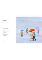 愛情的速度,人生的速度1 這個城市的跑車太快, 下班前的會議則進行得太慢。 然而這季節,風的速度、 葉子落下的速度、 我坐在樹下長椅所聽的音樂速度卻剛剛好。 其中, 現在和我一起聽著音樂的你, 有些變快的心跳速度最剛好, 也讓我感到心動。 這讓我感到 安慰又安心,我心想: 現在我人生的速度,這樣應該還可以吧? 現在我的人生,這樣應該還可以吧? 如果你不小心犯錯 如果你不小心犯錯, 你的上司會責怪你, 你的競爭對手會鬆一口氣, 在你底下工作的後輩會對你感到失望。 但是愛你的那個人, 他會始終如一地相信你、愛你。 他的信任, 會帶給你下次犯錯的勇氣, 也是你更靠近成功的機會, 最重要的是,這無關成敗, 而是你要相信你自己。 告白 衝動的告白,若對方接受, 那就是準備好的告白。 準備好的告白,若被對方拒絕, 就成了衝動的告白。 鑰匙握在對方的手上, 但是能抓住那把鑰匙的人正是想告白的人。 可以確定的是, 無論愛情的鎖是否打得開, 衝動的告白也好,準備好的告白也好, 一樣都是有勇氣的告白。 還有,最讓人後悔莫及的告白, 不是當下被拒絕的告白, 也不是被委婉拒絕的告白, 而是沒有說出口的告白。 適當的距離 剛交往的戀人之間所需要的距離, 是看得到美麗的五官,但是看不見粉刺的距離。 鄰居和鄰居之間所需要的距離, 是彼此聽得到親切的招呼聲,但深夜聽不見歌聲的距離。 上司和部下之間所需要的距離, 是辦公桌擺得很近,但週末不打擾的距離。 好朋友之間所需要的距離, 是一起開心、一起難過,但是允許孤獨的距離。 連樹和樹之間也需要距離, 才能讓樹枝自由伸展, 當然人與人之間也需要適當的距離。 愛我的「人」 當我們相愛時, 要記得他不是「愛」我的人, 而是愛我的「人」。 愛情並非如夢似幻, 是完美無缺、 崇高、 能犧牲包容一切的, 而是來自有血有肉的人, 是不完美、 會經常犯錯、 有喜怒哀樂的感情。 如果你能記住這點,那麼 對於現實中每一刻你所遇到的愛情真相, 對於和對方約好三點見面他卻遲到三十分鐘的事, 對於因為他忙著公司工作而忘記紀念日的事, 對於他發誓不再犯的錯又再次違背的事, 對於一邊滑手機一邊聽你認真訴苦的態度, 你不會感到絕對的失望、憤怒,且否定愛情的本質, 而是會體諒對方,找到讓他了解自己的方法。 同時你也會游刃有餘地發現, 愛情的心臟仍充滿活力地跳動著。 愛我的人,是「人」。 認同這點,當你越深入地靠近他, 你越能領悟,雖然愛情的素顏不如遙望時的肌膚般光滑, 但愛情的雙唇嚐起來仍是如此甜美。 一見鍾情沒說的話 「一見鍾情」前面應該少說了「看到那個人的外表之後」這段話。一見鍾情看似最純真又浪漫,但其中的含義似乎包含了動物本能和野性。諷刺的是,若想有機會真心挖掘、探索一個人的內在,可能得先取決於對方的外表。若(主觀)覺得對方的外表不具魅力,應該也很難產生想探索對方內在的動力。或許你願意深入了解,對方可能是全宇宙最適合自己的男人或女人。 然而幸運的是,即使不需像《美女與野獸》那樣強迫兩人共度時光,生活中還是有很多機會能藉著持續見面來了解一個人的內在,例如在學校、在公司、在同是大型犬或多肉植物愛好者的聚會中。或許你會突然對一位從不感興趣的人產生「沒想到他也有這一面?」的想法,代表愛情的徵兆前來敲門的時刻也靠近了。如果訪問情侶對彼此的第一印象,或許會有不少人回答:「一開始不知道有這個人,甚至對他不感興趣。」或是「他是裡面最不起眼的人了」。 還有,即使一個人的外表,可以當作愛情的線索,但最終若是內在無法滿足彼此,那麼這段愛情也很難持續。若彼此對開心和難過沒有共鳴;無法理解對方為何傷心;無法帶給對方成就感;讓對方感覺自己被需要;感覺到愛人才能給予的溫暖,那麼初次見面就產生的愛情,結束時也只能被當作是感情上的突發事件。為什麼一見鍾情的王子與公主的故事,最後總是「從此過著幸福快樂的生活」(Happily ever after),或許只是因為童話需要一個適當的結局吧。 愛情萌芽的情形很多都與外表魅力有關,但那不代表一切,而且愛情要能持續,內在一定是重要的因素,因此和野獸墜入愛河並非只存在於迪士尼電影中,而如果我交往對象不在乎鏡子裡那些我不滿意的樣子,那我也會不在乎那個人的外表,這件事也無須覺得驚訝或懷疑。或許這就是為什麼童話或電影會把愛情的真相譽為愛情的魔力吧。 因為,愛情雖然始於眼睛、鼻子、嘴巴,但最後還是會走入心裡。 親吻和下一個親吻之間 親吻和下一個親吻之間的距離越長,會對彼此產生依戀; 好奇和答案之間的距離越長,好奇心會越趨強烈; 夢想和成就之間的距離越長,內心就會變得堅強。 有時,比起即時的愛情、即時的答案、即時的成功, 等待的背後, 會讓我們的愛變得越深、讓我們探索世界、讓我們成長。 就像比起只要三分鐘就能吃到的微波速食, 需要長時間用大鍋悶煮的飯,吃起來更健康、更美味一樣。 關於從旅行的他方回到家 第一次旅行的地方,陌生的風景總是讓人感到悸動。由空氣中不同密度的水分所創造出來的特別的天空色,第一次看到的樹種所創造出來的異國影子,用不同語言所寫的道路標誌,它們一如往常地待在那裡,但看起來卻像在熱烈歡迎前來的旅客。在評價料理的味道時也是如此,若餐廳