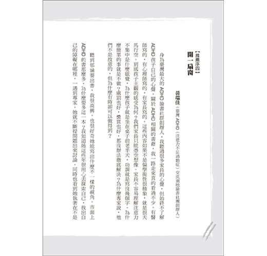 ✽適合閱讀對象:注意力缺陷過動症(ADHD)小孩、成人/父母、老師/社會大眾