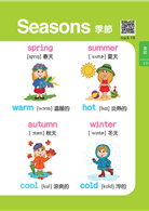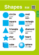 認識A~Z,26個字母的大小寫與唸法,進而學習數字、顏色、形狀、時間、天氣等概念單字。